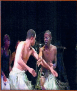 De danser ‘ Tinge’ Lorizin Silwet Gaetan Landry avek Johny Magnan pe fer en performans